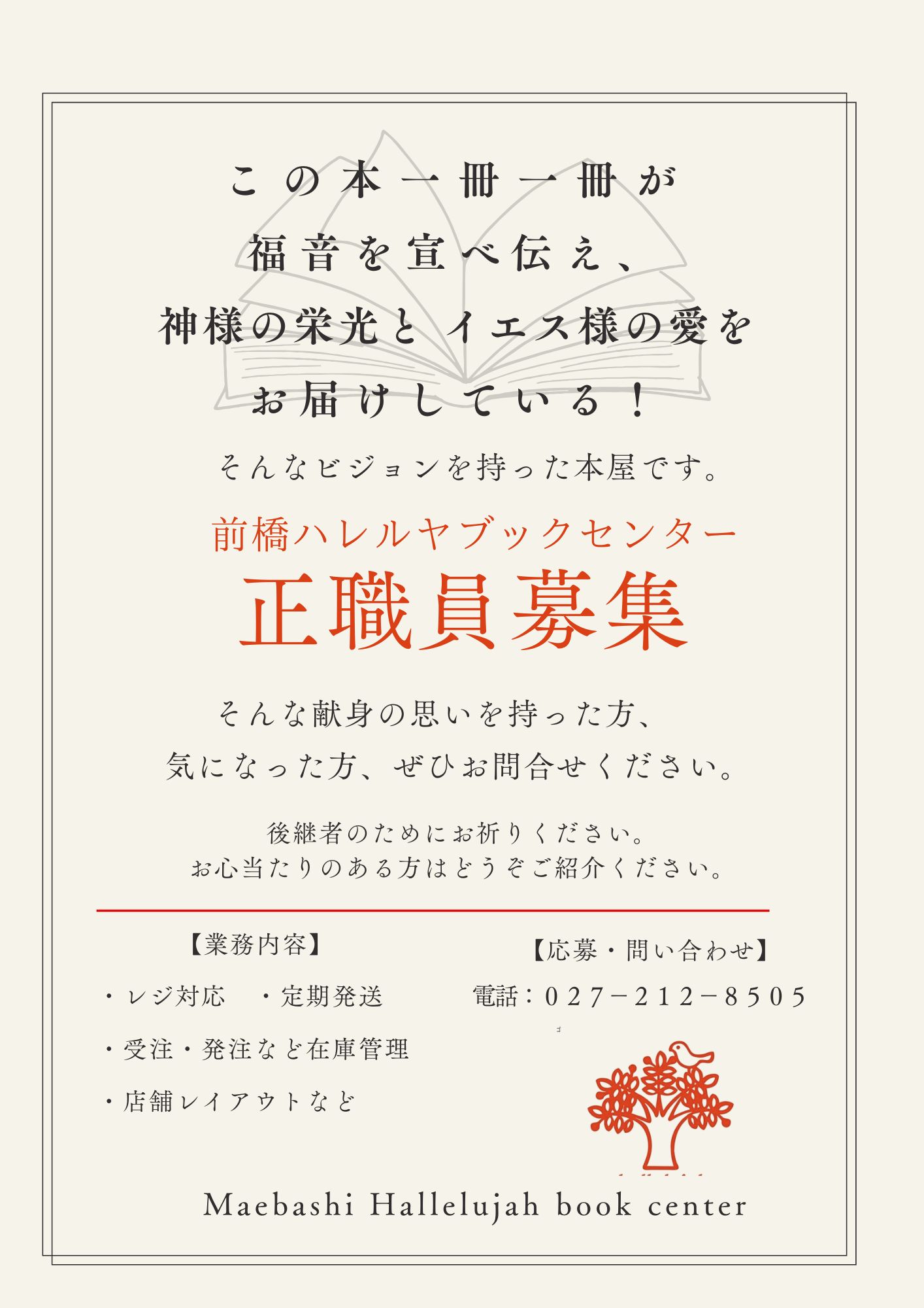 前橋ハレルヤブックセンターでは、正社員を募集しています。